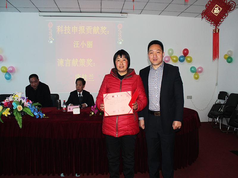 圖5 總經理傅士超為員工汪小麗頒發科技申報貢獻獎并合影留念