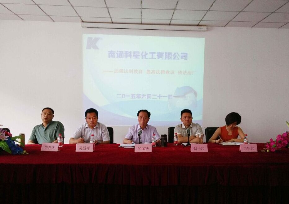 為了提高全體員工遵章守法的意識(shí),依法治廠,南通科星化工有限公司于2015年6月21日上午在公司南廠區(qū)會(huì)議室對(duì)全體員工進(jìn)行了“加強(qiáng)法制教育,提高法律意識(shí),依法治廠”的教育主題活動(dòng)。會(huì)上,董事長(zhǎng)吳龍鐵在報(bào)告中指出:“黨的十八大四中全會(huì)習(xí)總書(shū)記提出依法治國(guó)的大政方針”,作為我們企業(yè),在進(jìn)行管理中必須嚴(yán)格遵守國(guó)家法律法規(guī),每個(gè)員工都要嚴(yán)格執(zhí)行公司十六項(xiàng)規(guī)章制度和員工手冊(cè),人人做安全生產(chǎn)、環(huán)境保護(hù)等各項(xiàng)法律法規(guī)的守護(hù)神。