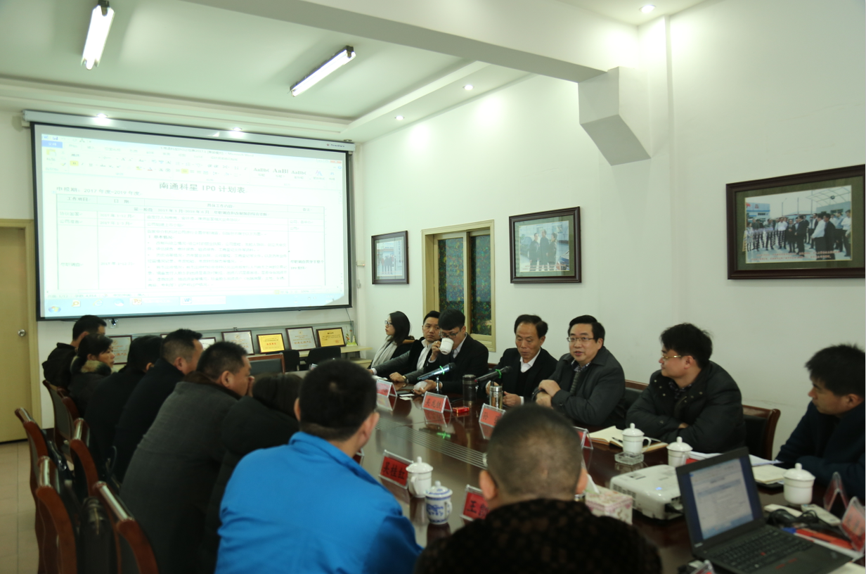 2017年1月18日上午十時,科星公司在公司總部會場舉行了主板上市推進會,縣發改委上市辦主任孫強、白甸鎮黨委副書記蔣增鵬同志及公司主要領導參加會議。