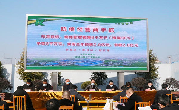 “咬定目標(biāo),確保新增銷售6千萬元(增幅30%),爭(zhēng)取8千萬元,實(shí)現(xiàn)全年銷售2.6億元,爭(zhēng)取2.8億元。一年的企業(yè)靠運(yùn)氣、十年的企業(yè)靠產(chǎn)品、百年的企業(yè)靠文化。科星每位員工要肩上都有擔(dān)子,心里有動(dòng)力,前進(jìn)有方向。才能打硬仗、打苦仗、打勝仗。希望科星人拿出壯士斷腕的勇氣實(shí)現(xiàn)全年目標(biāo)任務(wù)”這是南通科星化工總經(jīng)理在2020年2月20日下午公司召開的動(dòng)員大會(huì)的講話。