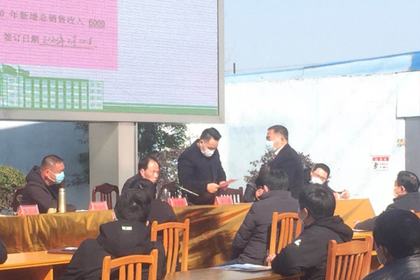 區(qū)域銷售經(jīng)理們分別上臺(tái)向銷售總監(jiān)吳昌祥遞交2020年目標(biāo)責(zé)任狀。