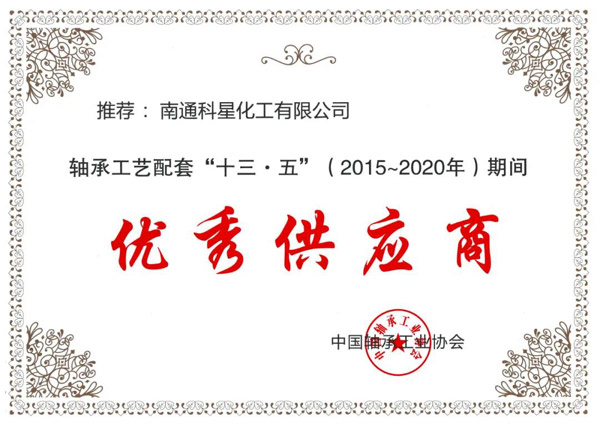 南通科星化工有限公司喜獲中國軸承工業(yè)協會“工藝配套優(yōu)秀供應商”稱號