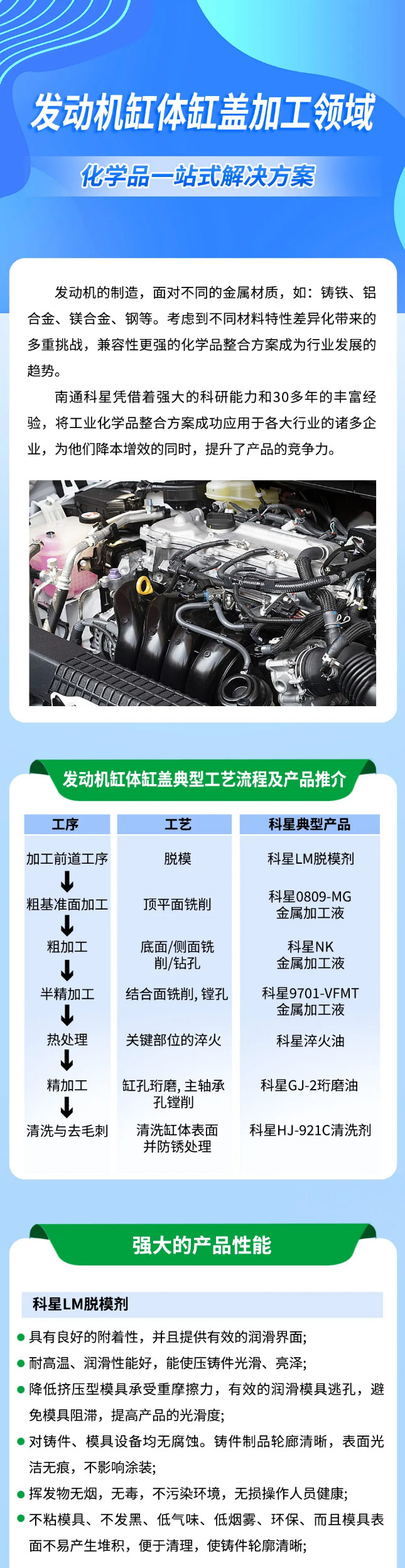 發動機缸體缸蓋加工領域化學品一站式解決方案