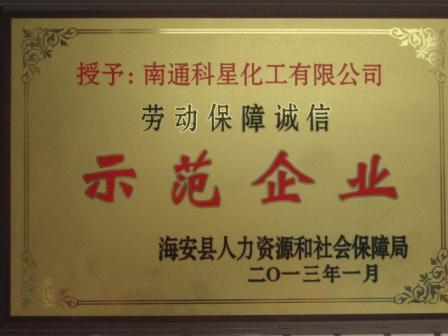 我公司積極響應(yīng)號召,關(guān)心職工生活,凡在職員工百分之百繳納了“企業(yè)養(yǎng)老保險”、“職工醫(yī)療保險”、“工傷保險”等。被海安縣人力資源和社會保障局評為“勞動保障誠信示范企業(yè)”。